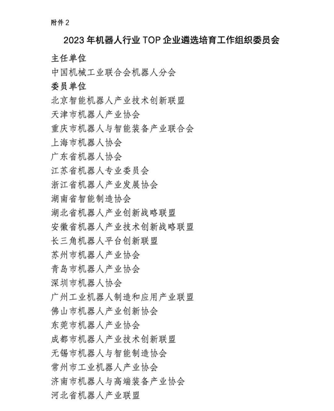关于2023机器人行业TOP企业遴选培育名单的公示