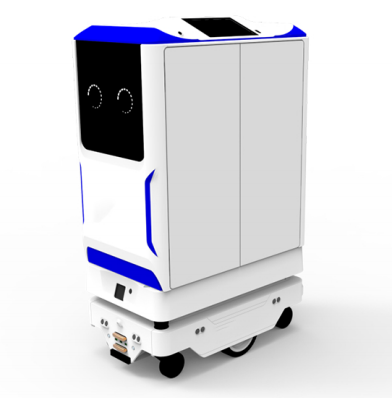 药品/补液运输机器人外观尺寸为810x480x1245mm(长*宽*高),单个药柜容量为55L,整体载重150Kg,最高运行速度为1.8m/s。 主要用于中心药房到各病区的口服药物及Pivas运输、病区到检验科的标本运输。